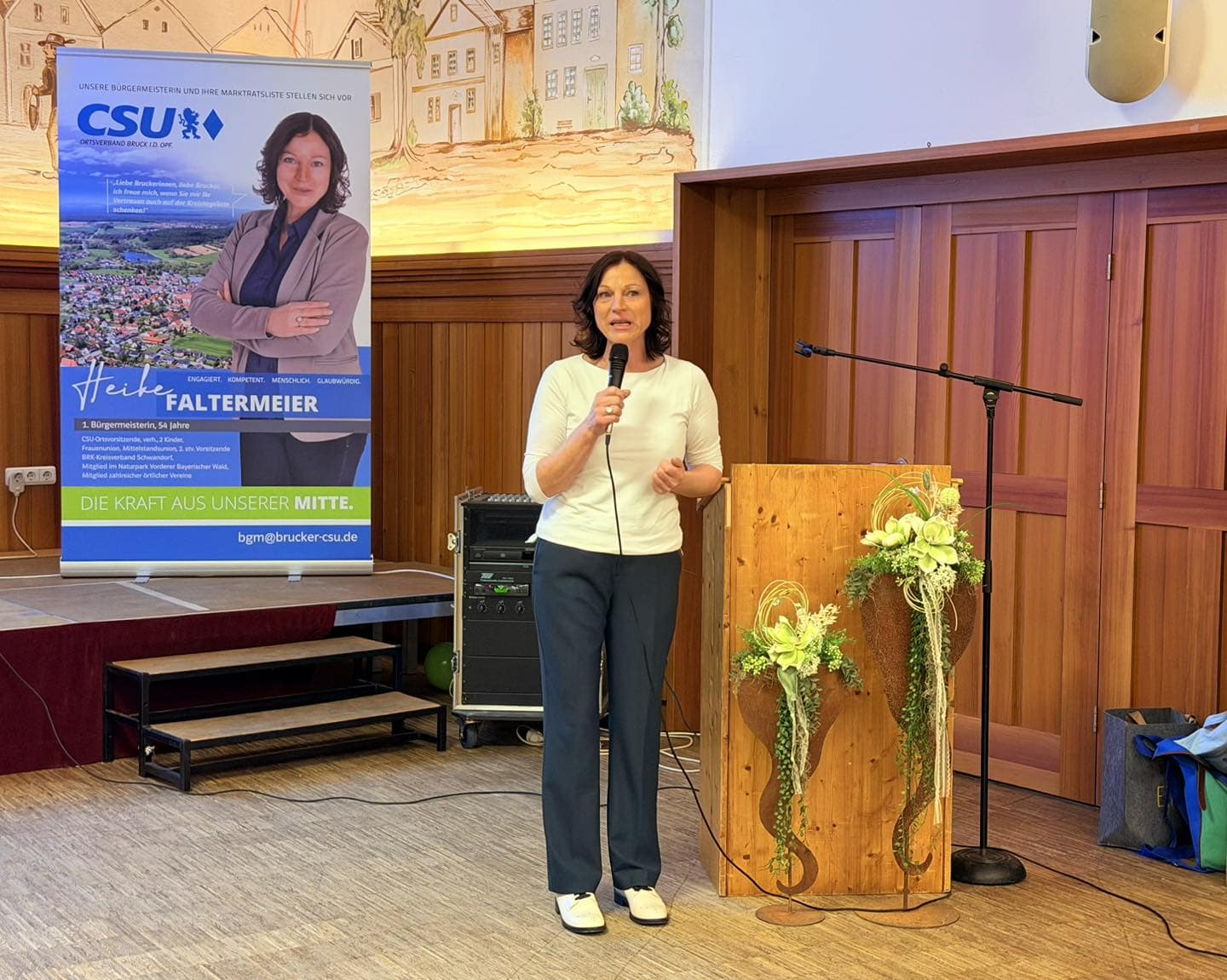 Danach sprach unsere Bürgermeisterin und Bürgermeisterkandidatin Heike Faltermeier über die Entwicklungen der letzten sechs Jahre und ihre Ziele für die Zukunft von Bruck.